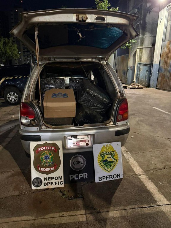 PF, PC e PM apreendem veículo transportando cigarros e pneus contrabandeados