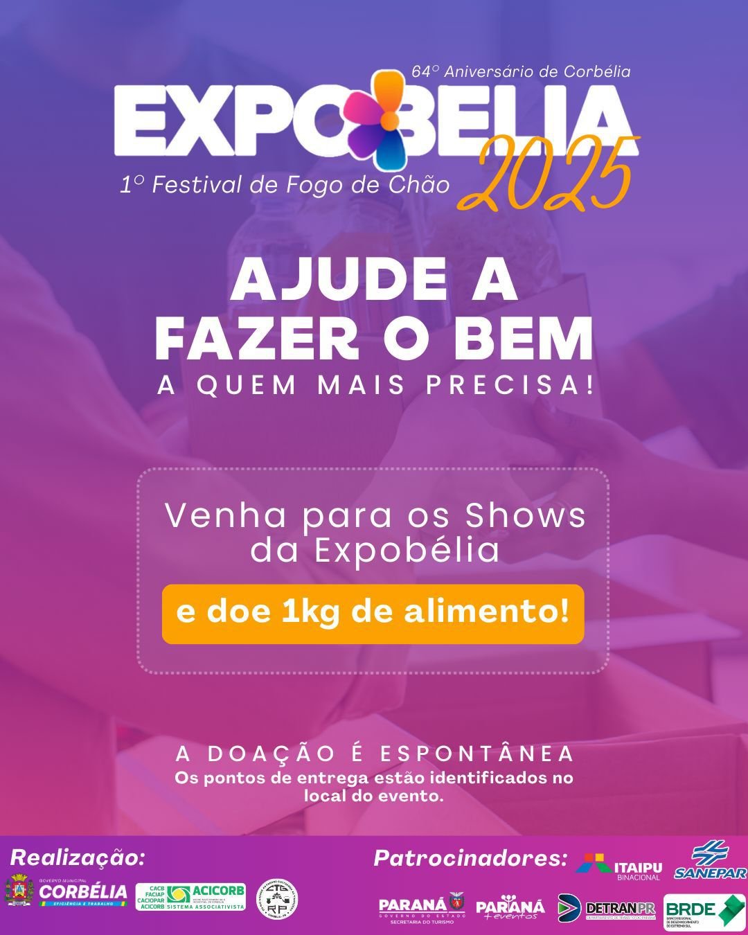 Expobélia 2025 incentiva solidariedade com campanha de arrecadação de alimentos