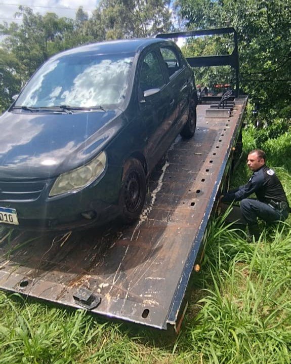 Carro furtado é recuperado após cair em barranco em Cascavel